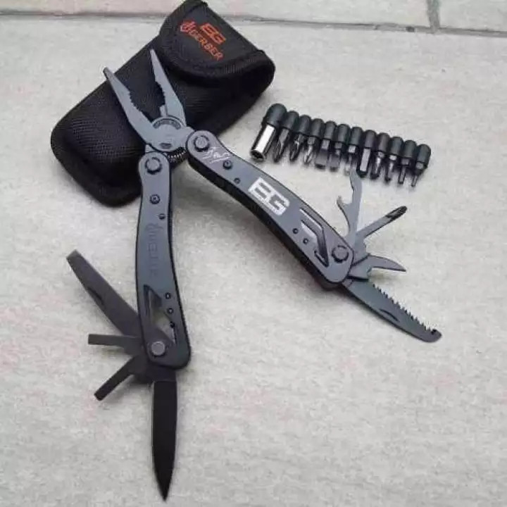 - Kìm gấp đa năng cao cấp bao gồm: kìm, cưa, dao, mở bia, giũa và 11 loại tô vít đi kèm được làm từ chất liệu thép không gỉ, độ cứng cao, gia công tỉ mỉ, thiết kế thông minh.