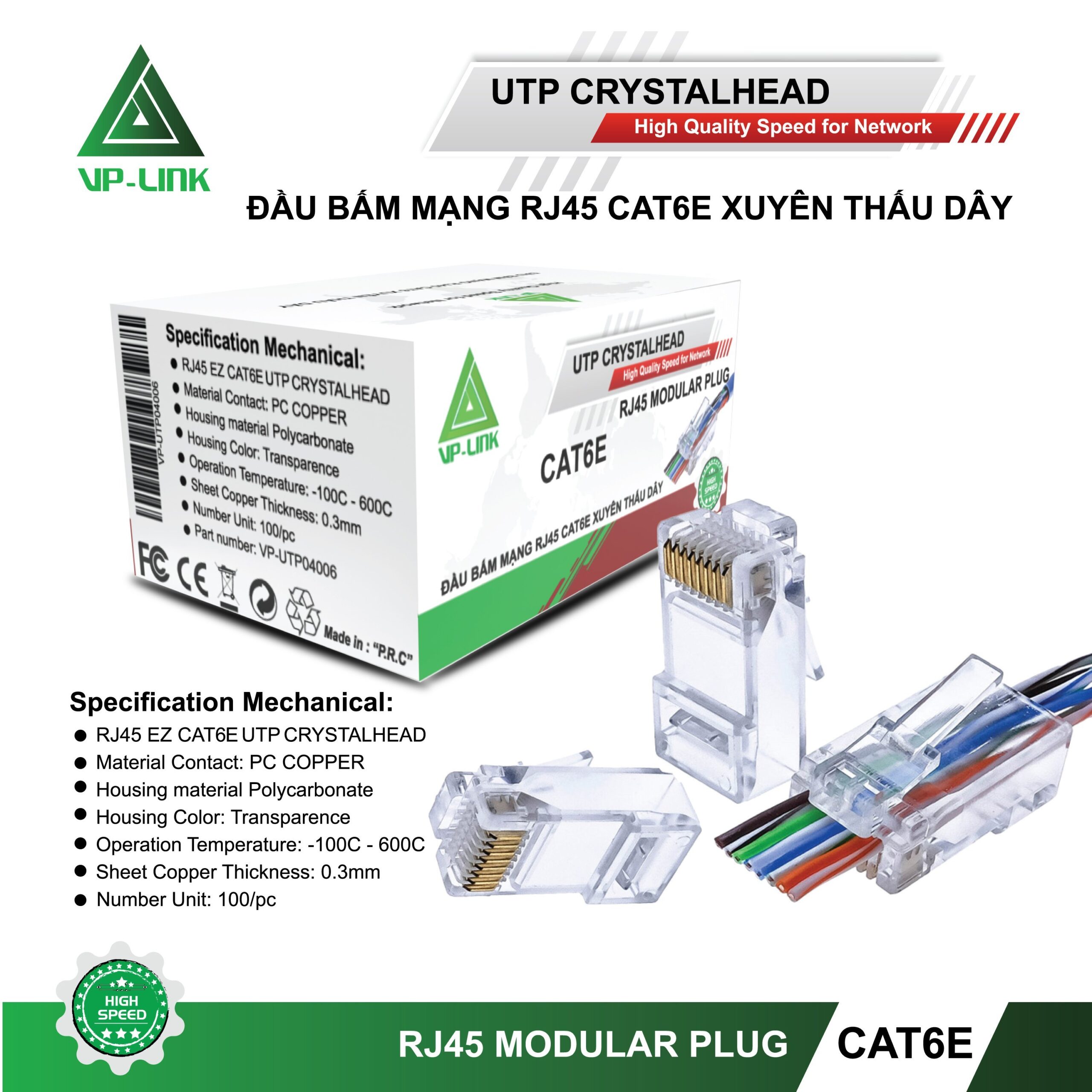 Đầu Mạng RJ45 VP-Link CAT6E Xuyên Thấu (100pcs)