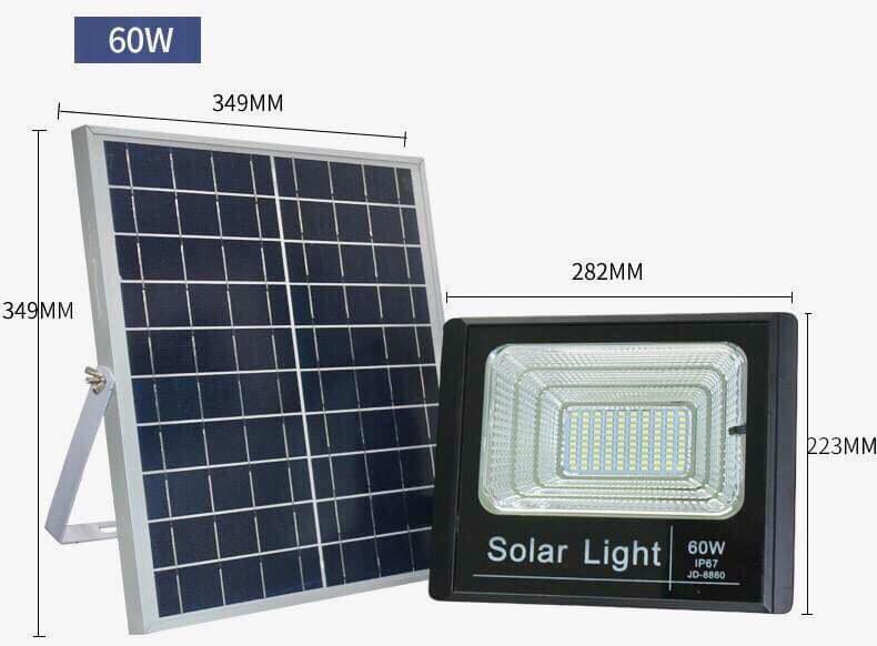 Kích thước (Dài x rộng x cao) Hộp : 38 x 37 x 14 cm / Đèn : 27.6 x 21.8 x 6.9 cm / Tấm pin : 36 x 35 x 1.7 cm
