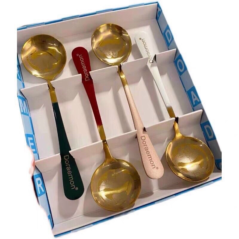 SET 4 MUỖNG DOREMON INOX MẠ VÀNG